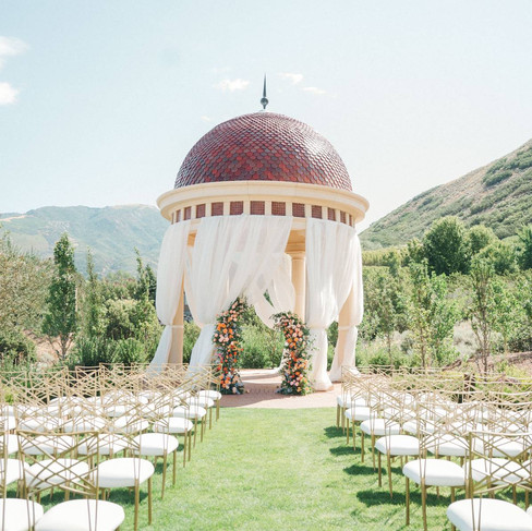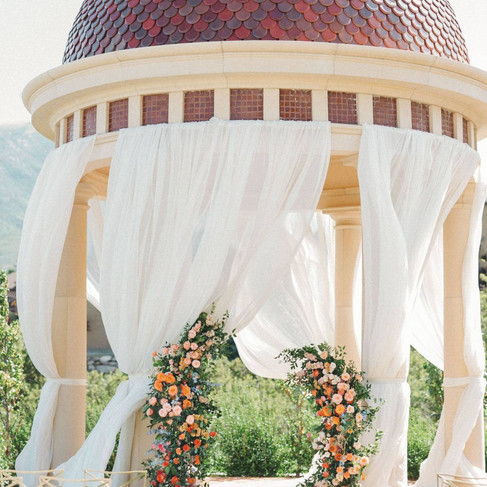 The iconic Siempre rotunda is stunning on its own, but add flowing drapery cascading from the top and you’ve got an entirely new level of romance. This design moment framed the ceremony space perfectly, adding softness and elegance while still letting our panoramic valley views shine. Add a floral backdrop to your ceremony, and you have the ultimate combination.